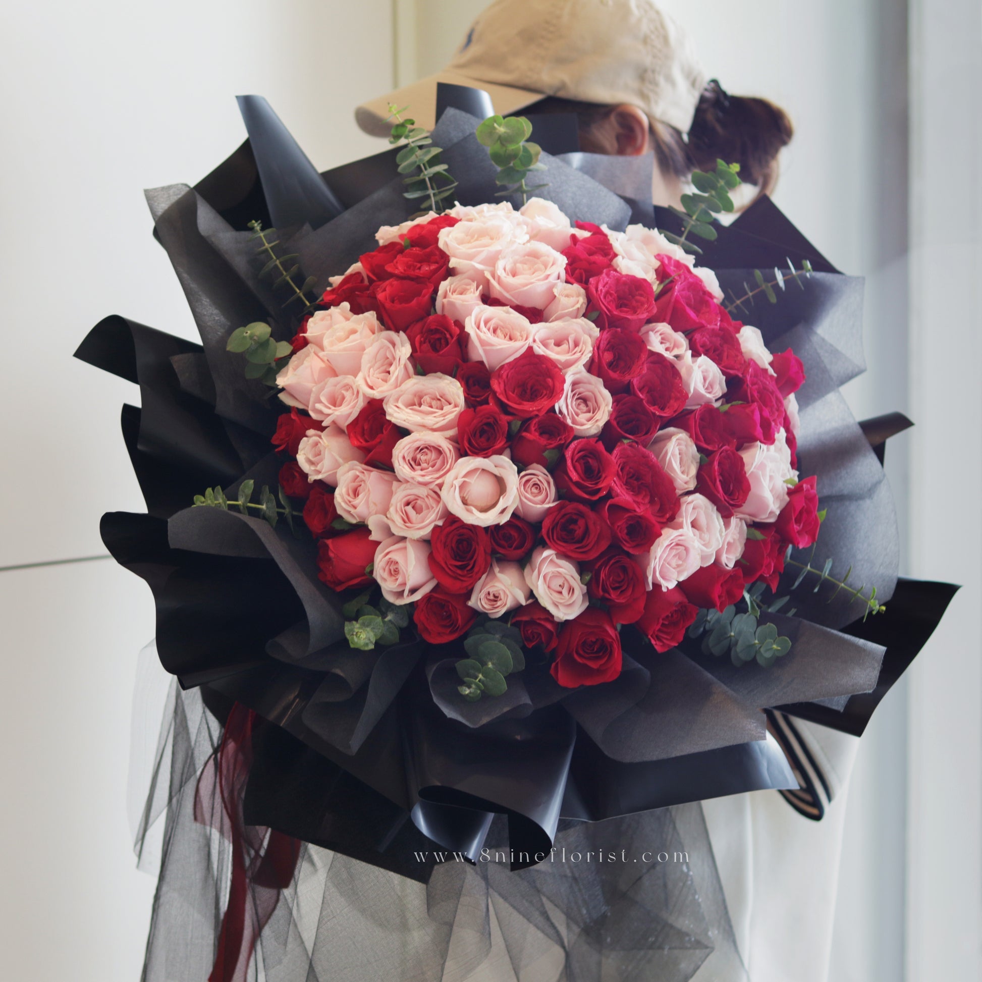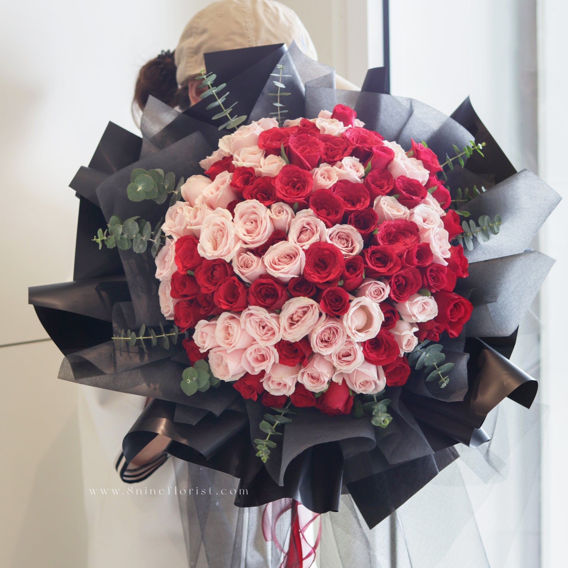 Suitable ForFriendship, Love, Anniversary, BirthdaySize Details(33stalks) 40 cm (H) x 45cm (W)(50stalks) 50 cm (H) x 55cm (W)(99stalks) 60 cm (H) x 60cm (W)Bloom DetailsThis Large Roses bouquet features 33, 50, 99 stalks Red, Pink Roses with a touch of Eucalyptus Leaves & elegant wrapping paper.Suitable For Friendship, Love, Anniversary, Birthday Size Details (33stalks) 40 cm (H) x 45cm (W) (50stalks) 50 cm (H) x 55cm (W) (99stalks) 60 cm (H) x 60cm (W) Bloom Details This Large Roses bouquet features 33, 50, 99 stalks Red, Pink Roses with a touch of Eucalyptus Leaves & elegant wrapping paper.Suitable For Friendship, Love, Anniversary, Birthday Size Details (33stalks) 40 cm (H) x 45cm (W) (50stalks) 50 cm (H) x 55cm (W) (99stalks) 60 cm (H) x 60cm (W) Bloom Details This Large Roses bouquet features 33, 50, 99 stalks Red, Pink Roses with a touch of Eucalyptus Leaves & elegant wrapping paper.